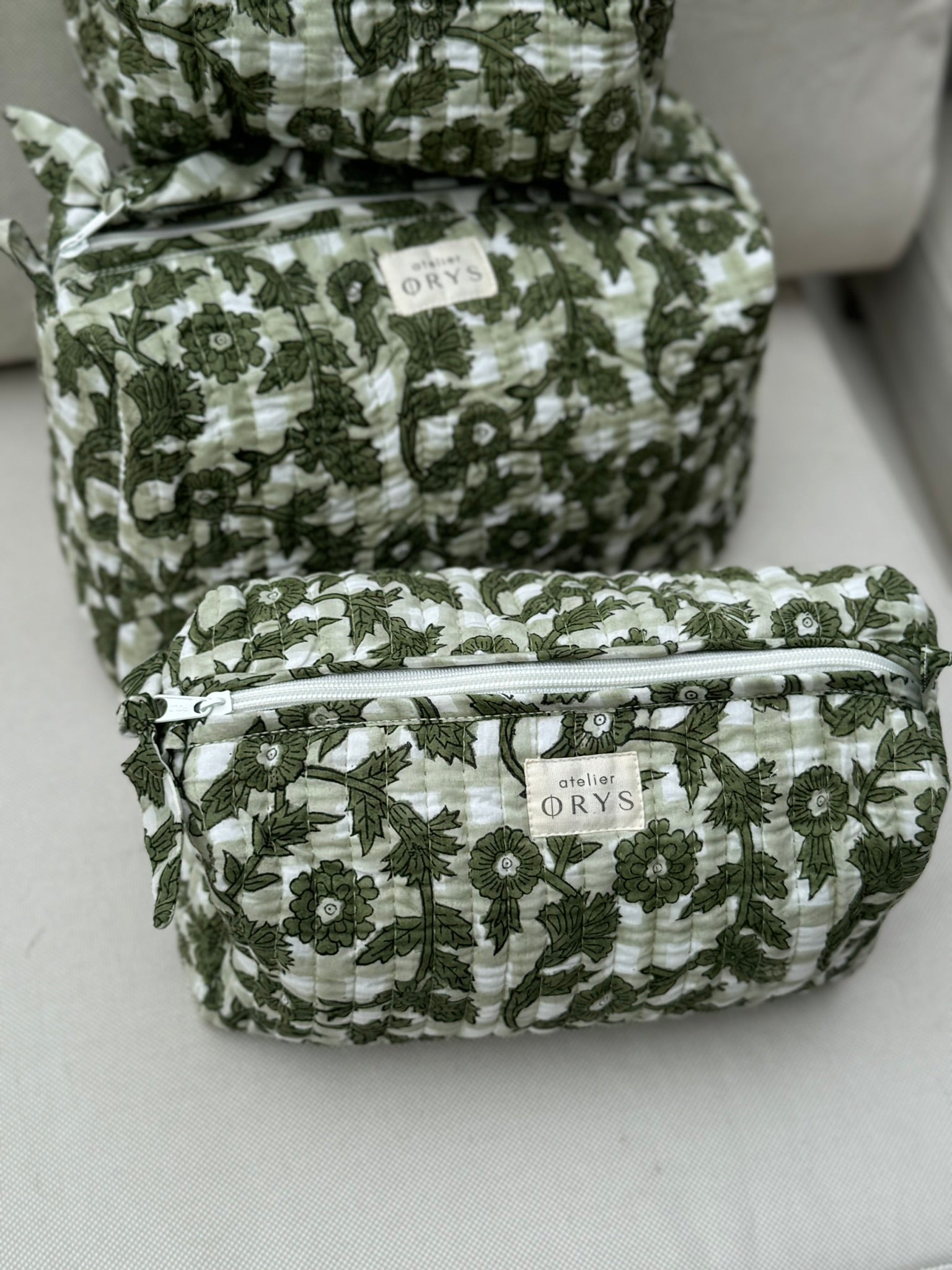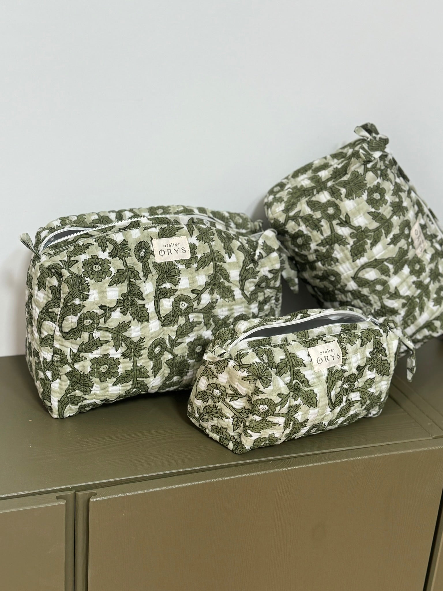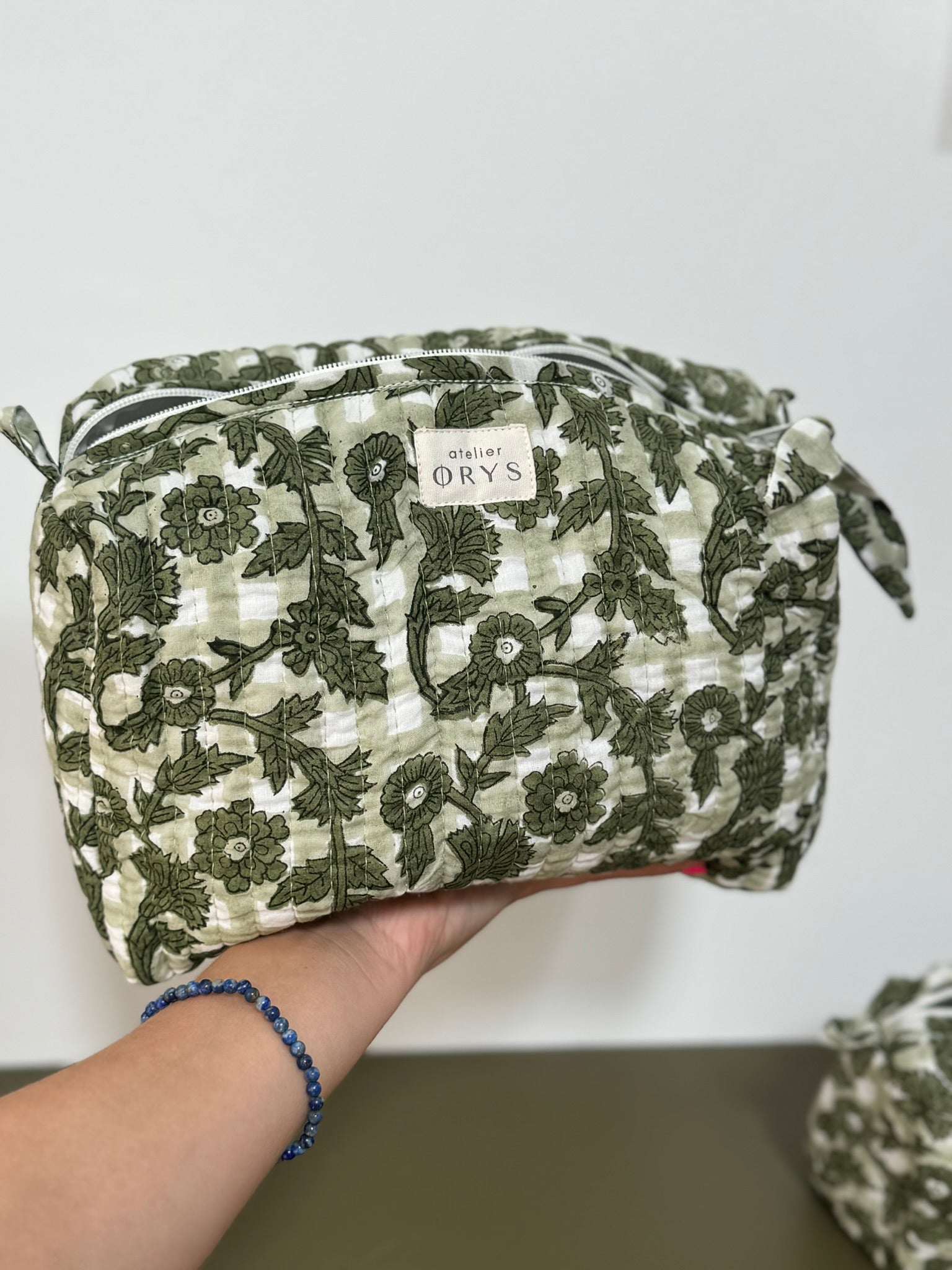 Trousse de beauté ou de toilette en tissu matelassé, taille au choix - Bertille sauge