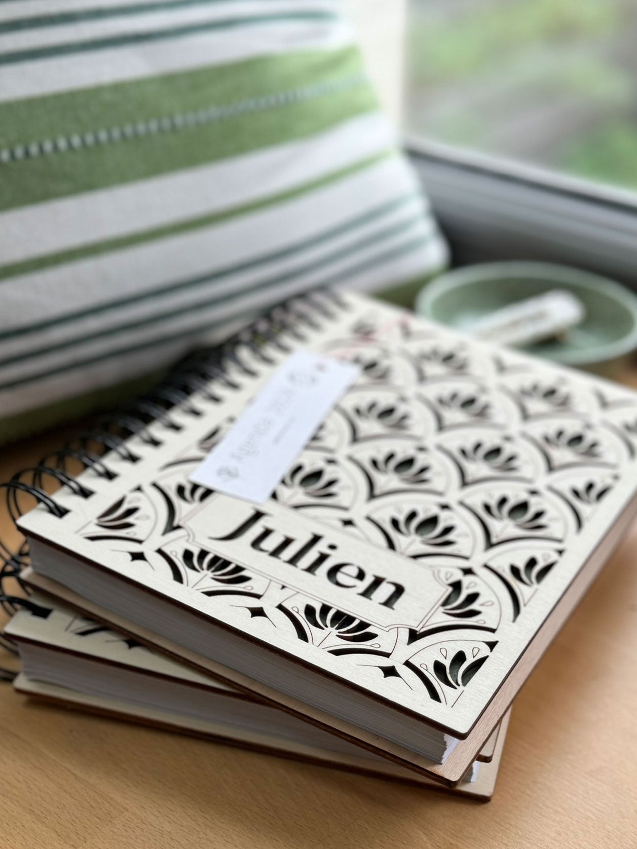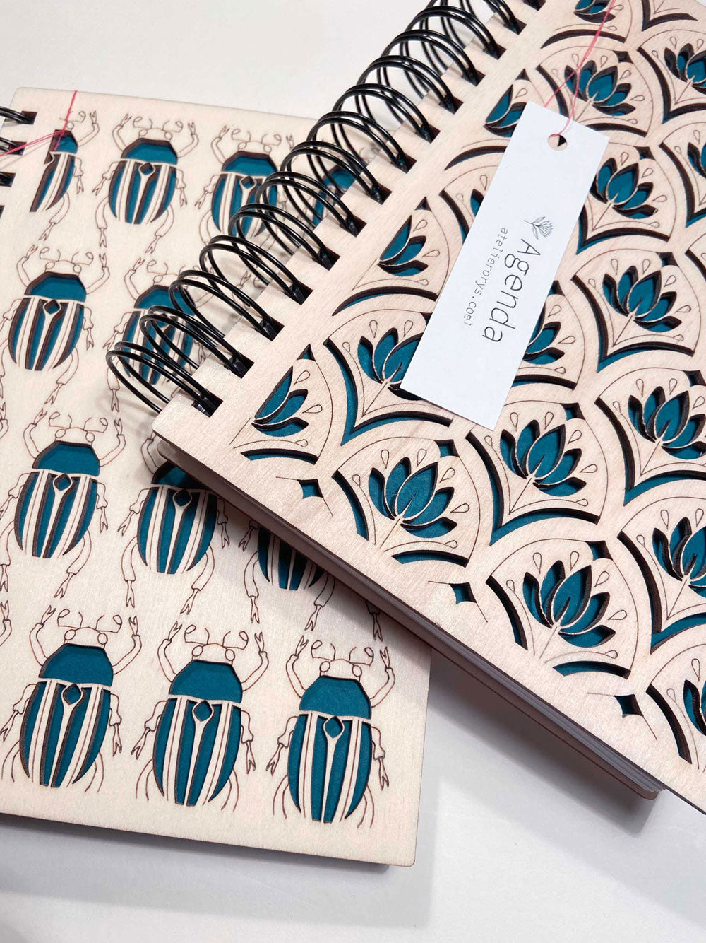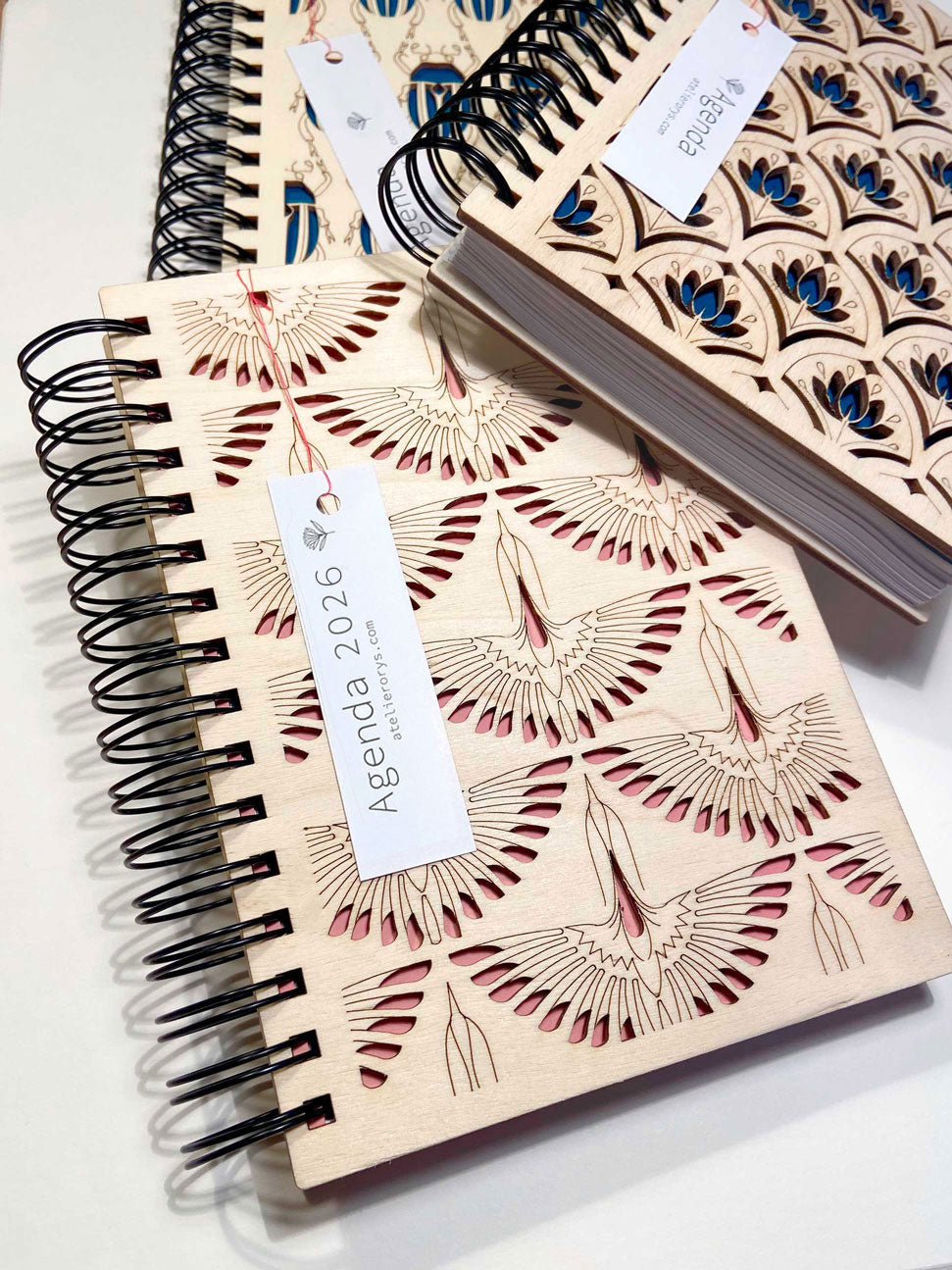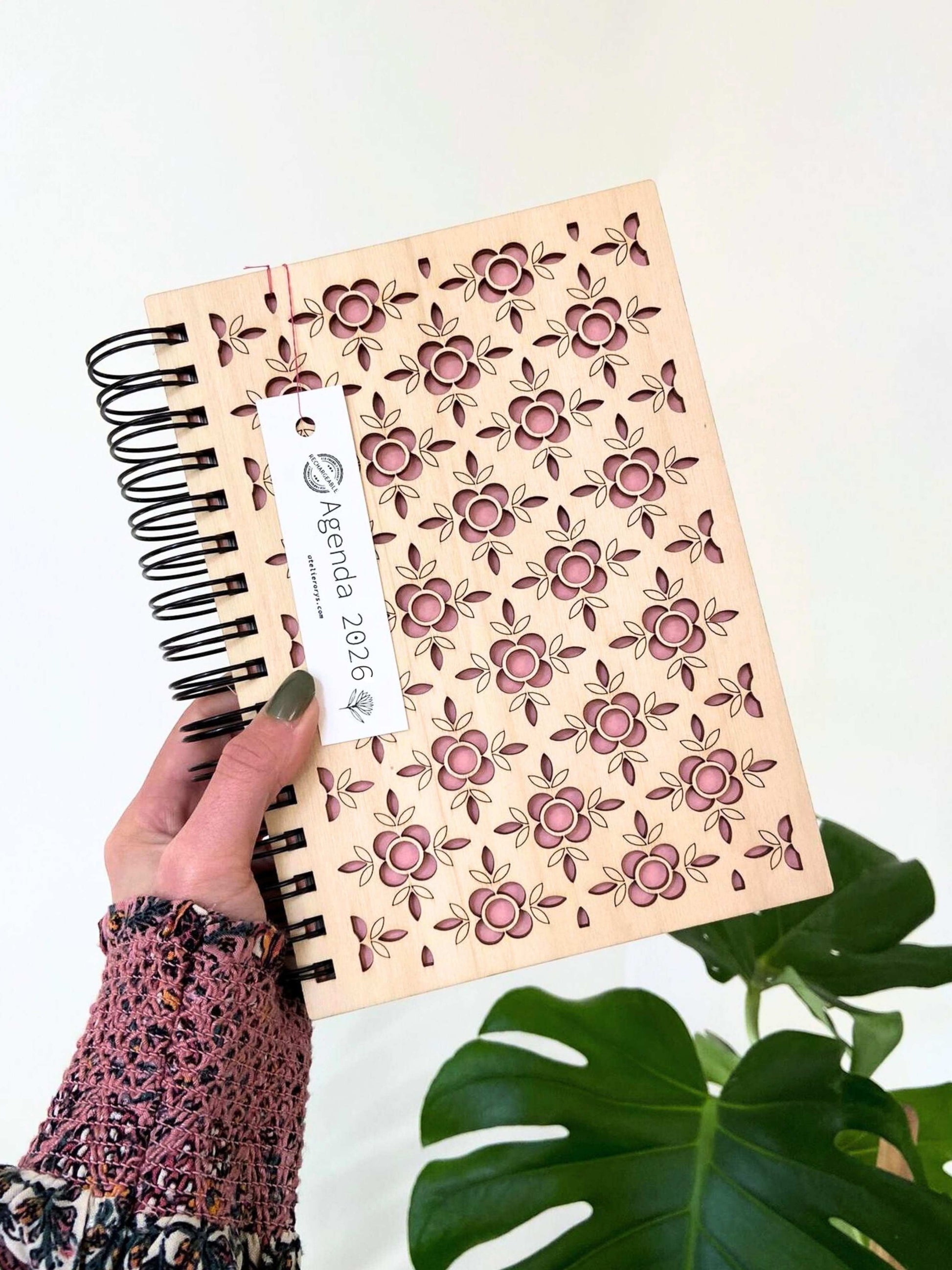 Terminkalender 2024 aus gemustertem Pappelholz, nachfüllbar