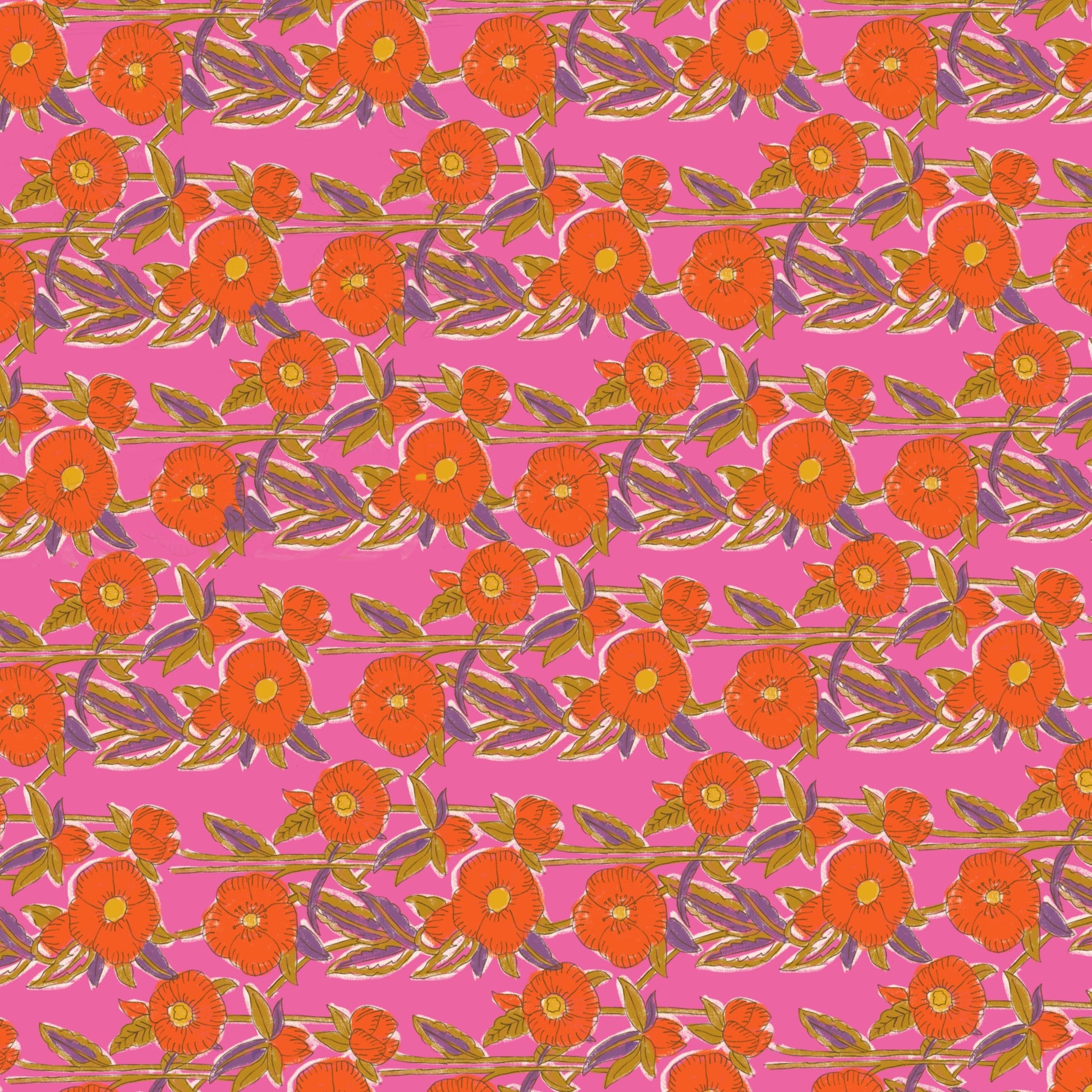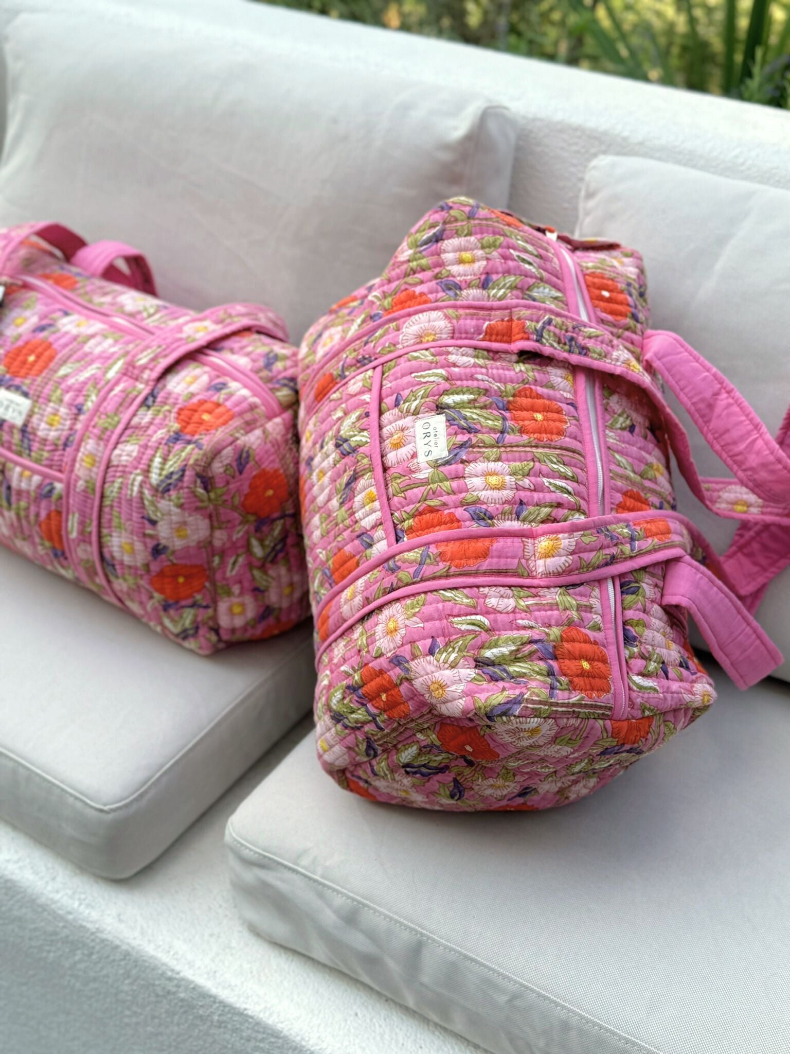 Grand sac week-end en blockprint fleuri rose 100% coton - Olympe Rosa
