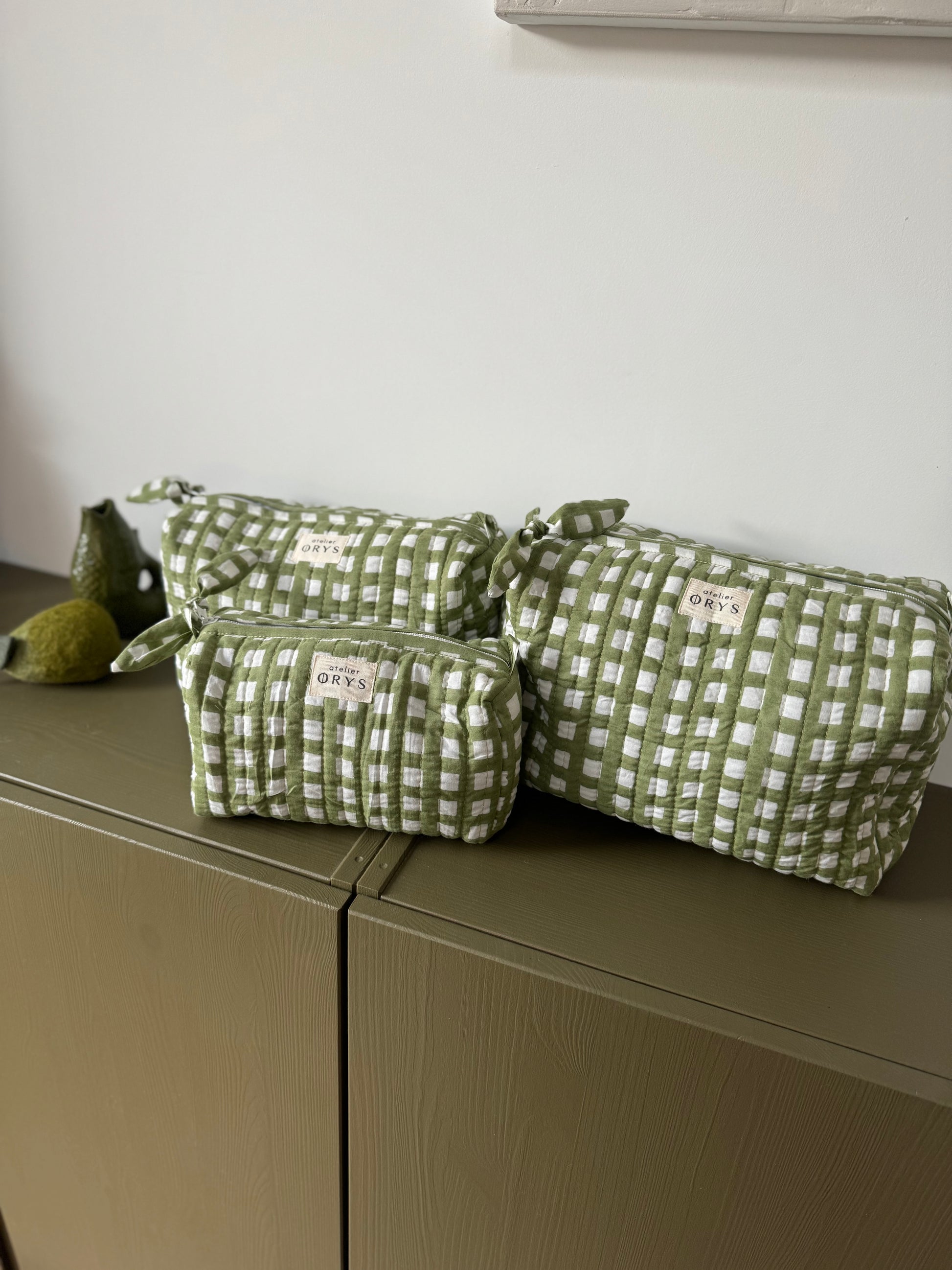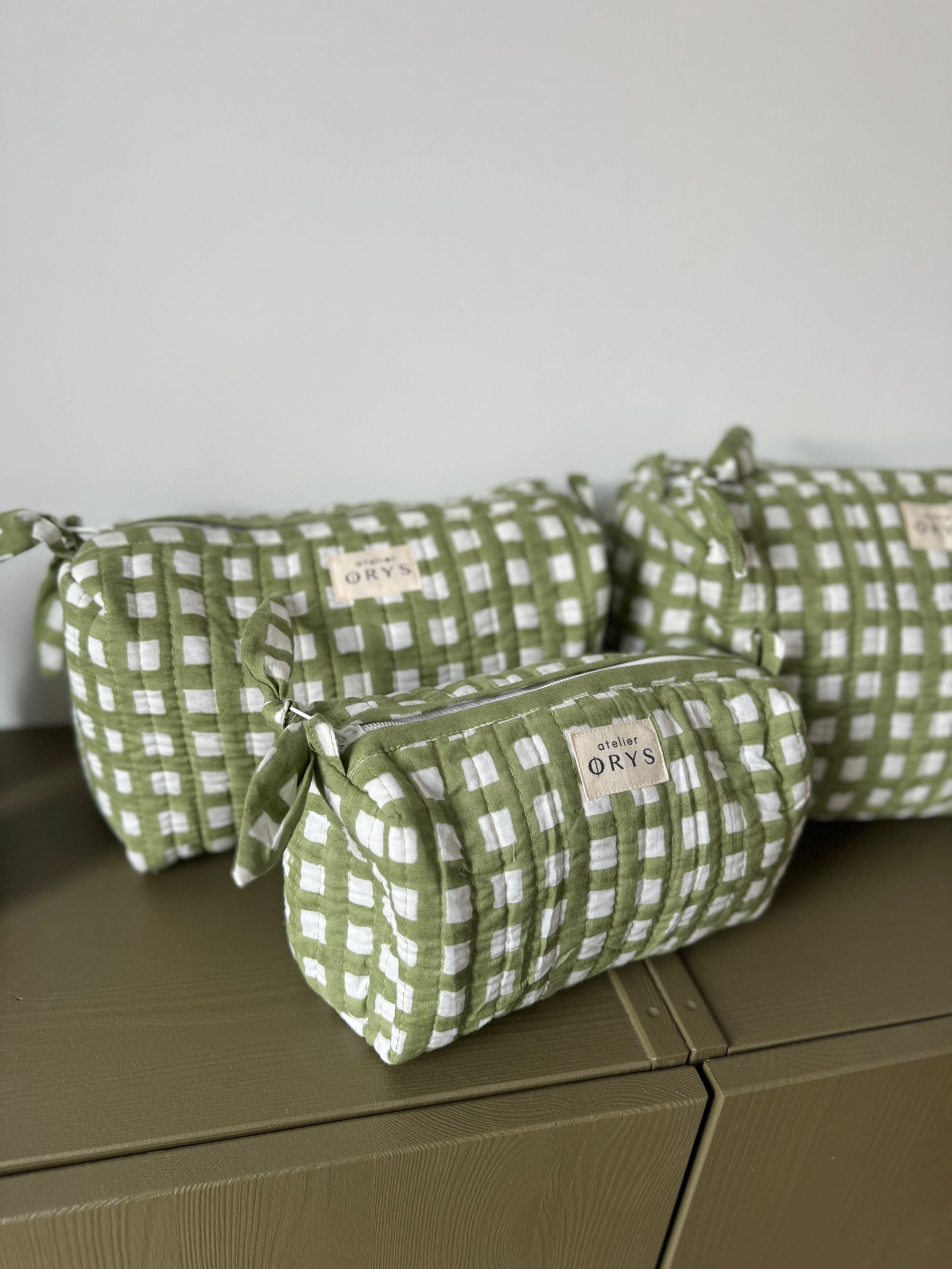 Trousse de beauté ou de toilette en tissu matelassé vichy, taille au choix - Ysé kaki
